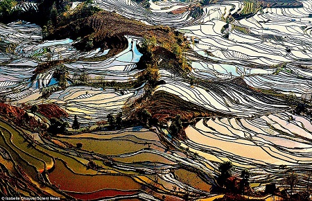 Chất đất, màu nước, thời điểm chụp ảnh trong ngày, loại cây lương thực được gieo trồng ở mỗi thửa… Tất cả những yếu tố đó tạo nên những bức hình đủ màu sắc đa dạng. (theo Dân trí - Bích Ngọc)(theo Dailymail)